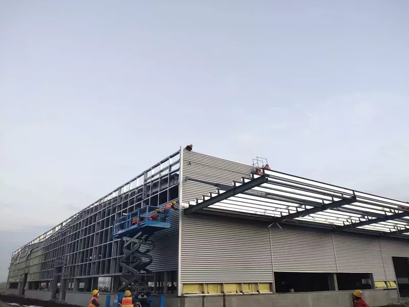 വലിയ-സ്പാൻ സ്റ്റീൽ ഘടന സാൻഡ്വിച്ച് പാനൽ വാൾ സിസ്റ്റം കാര്യക്ഷമവും സംയോജിതവുമായ ചുറ്റുമതിൽ പരിഹാരമാണ്. ഈ സിസ്റ്റം അകത്തും പുറത്തും മെറ്റൽ പാനലുകളാൽ ചേർന്നതാണ്, അതിനിടയിൽ തുടർച്ചയായ റോൾ-രൂപീകരണ പ്രക്രിയയിലൂടെ രൂപീകരിച്ചു. ഇത് ശക്തി, ഇൻസുലേഷൻ, അലങ്കാര പ്രവർത്തനങ്ങൾ എന്നിവ സംയോജിപ്പിക്കുന്ന ഒരു മതിൽ യൂണിറ്റ് സൃഷ്ടിക്കുന്നു. സ്വയം ഭാരം കുറഞ്ഞതോടെ 15-25 കിലോഗ്രാം / m² മാത്രം, ഇത് പ്രധാന ഘടനയിലെ ലോഡ് ഗണ്യമായി കുറയ്ക്കുന്നു, വലിയ സ്പാൻ കെട്ടിടങ്ങളുടെ കർശനമായ ഭാരം കുറഞ്ഞ ആവശ്യങ്ങൾക്കായി ഇത് പ്രത്യേകിച്ചും അനുയോജ്യമാക്കുന്നു. ഈ വാൾ സിസ്റ്റം അങ്ങേയറ്റം ഉയർന്ന ഇൻസ്റ്റാളേഷൻ കാര്യക്ഷമതയും ഇഷ്ടാനുസൃതമാക്കാവുന്ന ഉപരിതല നിറങ്ങളും ടെക്സ്ചറുകളും വാഗ്ദാനം ചെയ്യുന്നു, ഇത് വലിയ വാണിജ്യ സമുച്ചയങ്ങളിൽ ആധുനികവും ലളിതവുമായ ഒരു മുഖം സൃഷ്ടിക്കാൻ അനുവദിക്കുന്നു. കൂടാതെ, അതിന്റെ തെർമൽ ബ്രിഡ്ജ് തടസ്സപ്പെടുത്തൽ കെട്ടിടം കെട്ടിടത്തിന്റെ മൊത്തത്തിലുള്ള ചൂട് ട്രാൻസ്ഫർ ബാഫെക്ടർ കുറയ്ക്കുന്നു, energy ർജ്ജ കാര്യക്ഷമത വർദ്ധിപ്പിക്കുന്നു.