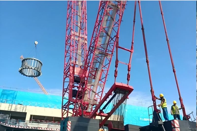 ഹോസ്റ്റിംഗ് എക്സിക്യൂഷൻ സുഗമമായി ഉറപ്പാക്കാൻ, പ്രോജക്റ്റ് ടീം നേരത്തെയുള്ള വിന്യാസങ്ങൾ നടത്തി: ഒരു പ്രത്യേക പ്ലാൻ ആർഗ്യുമെൻ്റേഷൻ സംഘടിപ്പിക്കുകയും ഹോസ്റ്റിംഗ് പ്രക്രിയ പരിഷ്ക്കരിക്കുകയും ചെയ്തു; ഒറ്റപ്പെടൽ മുന്നറിയിപ്പ് ഏരിയ സജ്ജീകരിക്കുക, പ്രക്രിയയിലുടനീളം കാറ്റിൻ്റെ വേഗതയും ഘടനാപരമായ സ്ഥിരതയും നിരീക്ഷിക്കുക; നിർമ്മാണം, മേൽനോട്ടം, രൂപകൽപന എന്നിവയുൾപ്പെടെ മൾട്ടി-പാർട്ടി കോർഡിനേഷൻ നടപ്പിലാക്കുന്നതിനും തത്സമയം ഉയർത്തുന്ന പോസ്ചർ ക്രമീകരിക്കുന്നതിനും ഓൺ-സൈറ്റ് നിർമ്മാണ തൊഴിലാളികൾ സഹകരിക്കുന്നു.