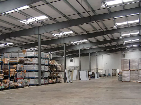 ഇന്റീരിയർ ഫിനിഷുകളും സിസ്റ്റങ്ങളും:ഫ്ലോറിംഗ്, ലൈറ്റിംഗ്, വെന്റിലേഷൻ, അഗ്നിശമന സംവിധാനങ്ങൾ എന്നിവയുൾപ്പെടെ നിർദ്ദിഷ്ട ആവശ്യകതകൾ അനുസരിച്ച് വെയർഹൗസിന്റെ ഇന്റീരിയർ പൂർത്തിയായി. പ്രവർത്തനക്ഷമത ഒപ്റ്റിമൈസ് ചെയ്യുന്നതിന് സംഭരണ ​​റാക്കുകൾ, മെസാനൈനുകൾ തുടങ്ങിയ പ്രത്യേക ഉപകരണങ്ങൾ ഇൻസ്റ്റാൾ ചെയ്യാം.
