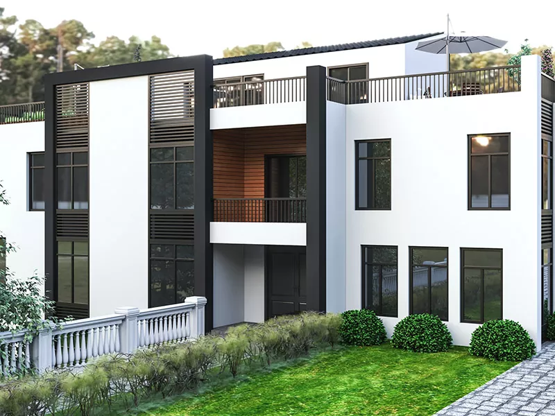 ● എനർജി എഫിഷ്യൻസി: ഇൻസുലേറ്റഡ് ഭിത്തികളും മേൽക്കൂരകളും, ഊർജ്ജ-കാര്യക്ഷമമായ ജനാലകൾ, സോളാർ പാനൽ സംയോജന ഓപ്ഷനുകൾ, ഊർജ്ജ ഉപഭോഗം, യൂട്ടിലിറ്റി ബില്ലുകൾ എന്നിവ കുറയ്ക്കുന്ന ഊർജ്ജ സംരക്ഷണ ഫീച്ചറുകൾ ഉപയോഗിച്ചാണ് വില്ല ഹൗസ് രൂപകൽപ്പന ചെയ്തിരിക്കുന്നത്.