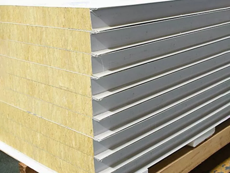 മികച്ച താപ, ശബ്ദ ഇൻസുലേഷൻ ഗുണങ്ങൾക്ക് പേരുകേട്ട മിനറൽ ഫൈബർ ഇൻസുലേഷൻ മെറ്റീരിയലായ റോക്ക്വൂൾ അടങ്ങിയതാണ് സാൻഡ്‌വിച്ച് പാനലിൻ്റെ കാമ്പ്. ഈ കാമ്പിനെ ചുറ്റിപ്പറ്റിയുള്ള ലോഹ ഷീറ്റുകളുടെ രണ്ട് പാളികൾ ഉണ്ട്, സാധാരണയായി സ്റ്റീൽ അല്ലെങ്കിൽ അലുമിനിയം, ഇത് ഘടനാപരമായ കാഠിന്യം നൽകുകയും ബാഹ്യ ഘടകങ്ങളിൽ നിന്ന് ഇൻസുലേഷനെ സംരക്ഷിക്കുകയും ചെയ്യുന്നു.