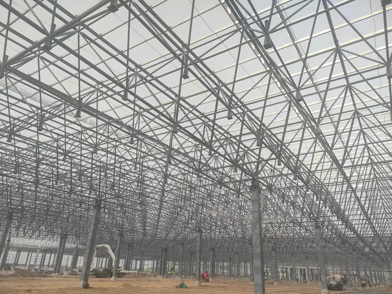 ശക്തിയും കാഠിന്യവും: സ്റ്റീൽ സ്പേസ് ഫ്രെയിമുകൾക്ക് ഒരേ ശക്തിയും കാഠിന്യവും ഉണ്ട്, മാത്രമല്ല ഗുരുത്വാകർഷണം, കാറ്റ് ലോഡുകൾ, ഭൂകമ്പം എന്നിവ പോലുള്ള ബാഹ്യശക്തികളെ ഫലപ്രദമായി നേരിടാൻ കഴിയും. ഇത് ബഹിരാകാശത്തിന്റെ വലിയൊരു ഘട്ടങ്ങളെ പിന്തുണയ്ക്കാൻ അനുയോജ്യമാക്കുന്നു.